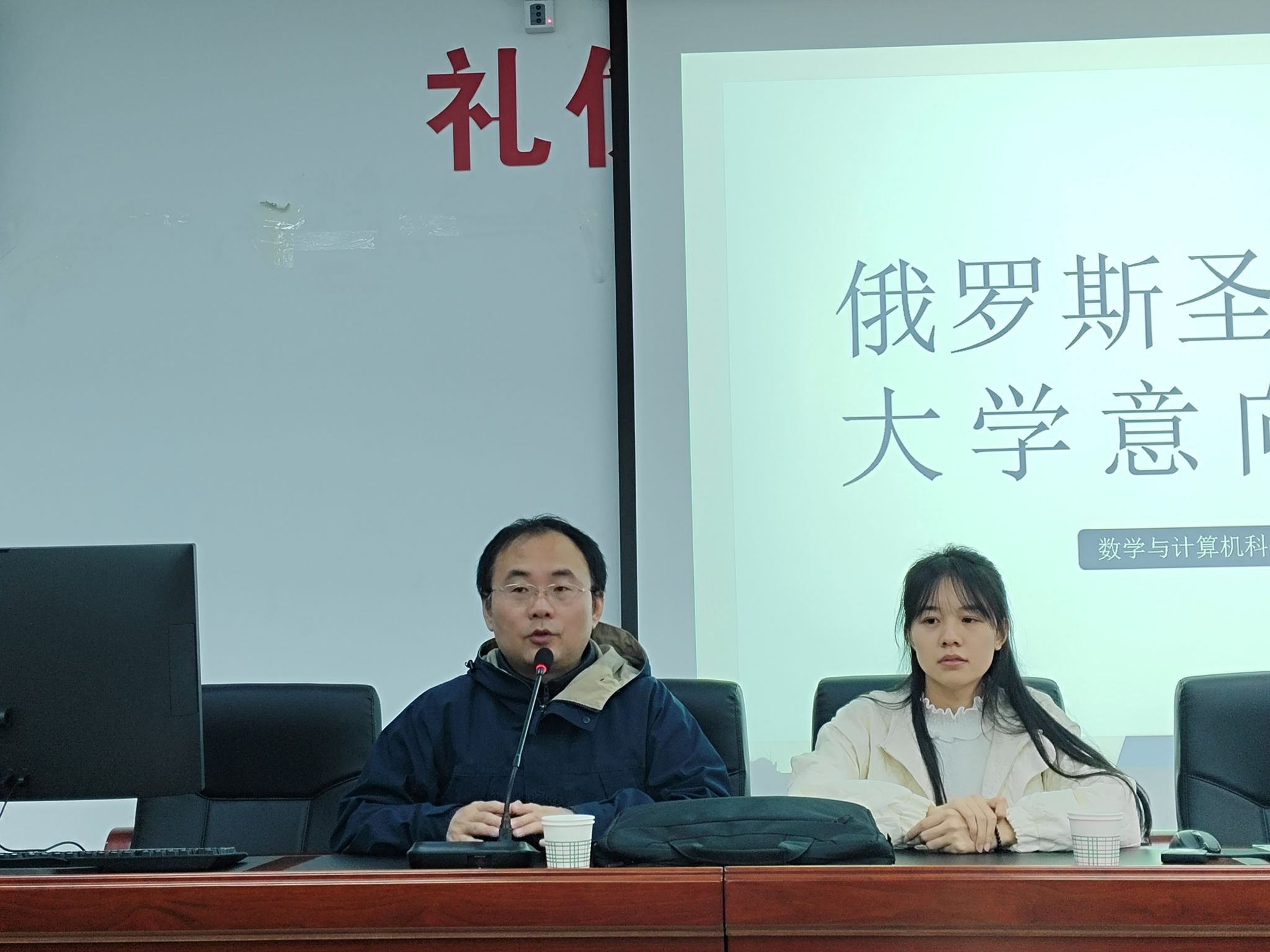 会上,李寅老师向同学们详细介绍了我校俄罗斯诺夫哥罗德国立大学联合培养项目与俄罗斯圣彼得堡国立大学留学项目,并邀请往届赴俄交流学生为同学们介绍了当地的风土人情以及学习情况。随后,赴俄交流学生代表白明,介绍了往届生求职经历及感受,鼓励同学们放宽眼界,一步一步实现既定目标。