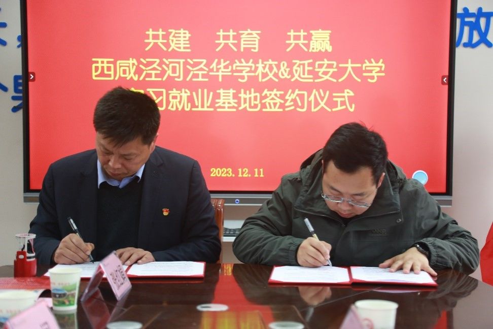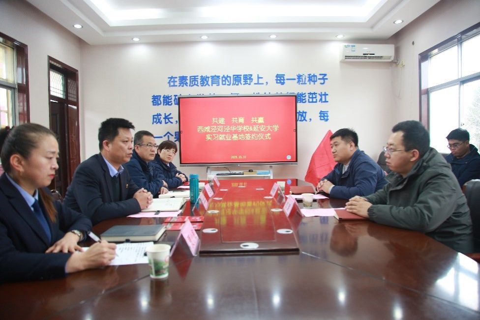 12月11日,必发集团前往西咸泾河泾华学校进行座谈,西咸泾河泾华学校党支部书记、校长张争航、高中部校长王闻、小学部校长张红娟、各学部教务主任和7790.cn必发集团校友代表共计20余人出席本次活动,活动由初中部校长贾晓敏主持,会上,双方就学生培养、实习、校园招聘等内容进行深入交流,签订了毕业生实习就业基地合作协议并揭牌。泾华学校高中部数学教师左港旋代表延大校友发言,表示要将延安精神带至泾华学校工作学习的每一天,做好立德树人、教书育人的本职工作。同时韩浩亮老师代表学院向用人单位赠送了《7790.cn必发集团校史》《平凡的世界》等书籍。