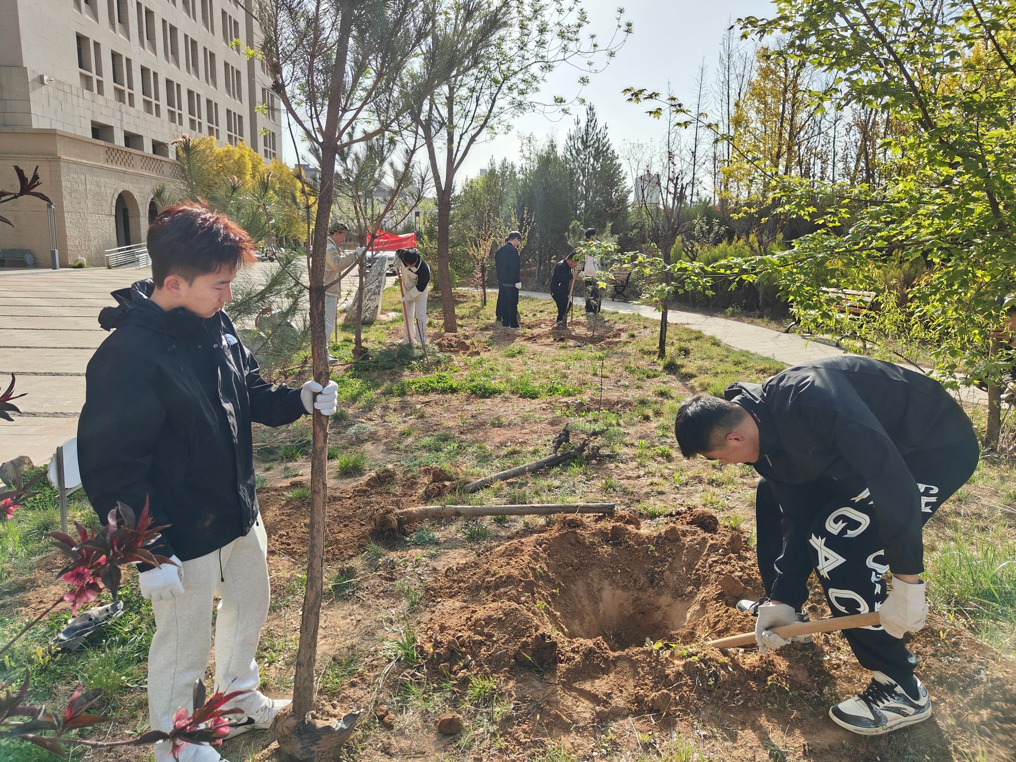 从理论学习到实践育人,7790.cn必发集团必发集团以明书园为阵地,将生态文明理念转化为可触可感的劳动实践。这场以“绿荫传薪火,明书育未来”为主题的植树活动,不仅为校园增添了盎然生机,更在青年学子心中种下了“劳动光荣、奉献为美”的种子,这次活动既是一次生动的社会实践,又是一堂鲜活的劳动大课,更是一次有温度的党日活动。