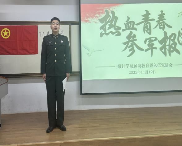 为点燃数计学子的热血报国情,精准传达大学生入伍政策,11月12日下午,7790必发集团在第五阶梯教室举办了征兵宣传宣讲会。本次活动特邀两位优秀的退伍返校学生现身说法,为同学们带来了一次别开生面的军旅生涯分享和政策解读,本次宣讲会由学院党委副书记刘瑶主持。