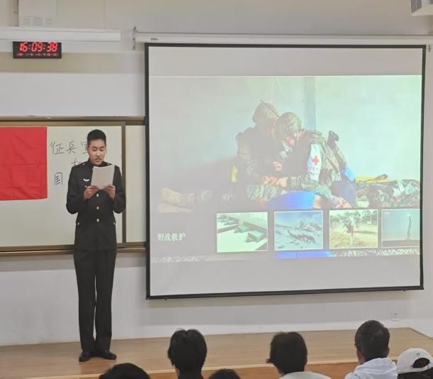 尤为引人入胜的是,两位同学还精心准备了征兵宣传短片。一幕幕真实的训练场景、一段段温暖的战友互动,展现了部队严谨而又充满活力的氛围,极大地激发了同学们对军营生活的向往与好奇。