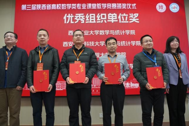 本项竞赛由陕西省高等学校教学指导委员会数理类工作委员会主办,西北工业大学承办,旨在深入贯彻落实高校立德树人根本任务,充分发挥课堂教学主渠道作用,深度挖掘并激发我省数学类专业教师课堂教学潜能,持续提高数学专业课课堂教学水平和育人成效。自2025年5月正式启动以来,得到了全省各高校的积极响应。历经单位选拔、报名推荐、网络评审、现场决赛等环节,于7月14日落下帷幕,最终评选出特等奖8名、一等奖12名和二等奖13名,并评选出优秀组织单位奖4个,我院参赛教师成绩在众多参赛高校中名列前茅,为学院争取了宝贵荣誉。