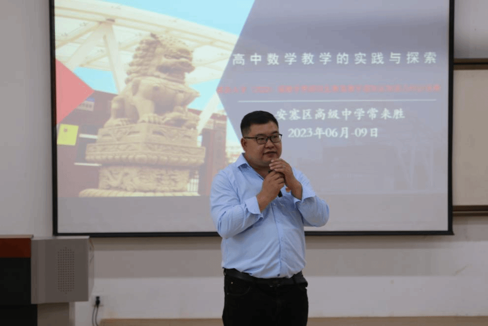 2023年6月9日下午,安塞区高级中学教务副主任常来胜老师、宝塔区第四中学乔会龙老师分别为数学专业22级和21全体学生做职业认知报告,马乐荣副院长和数学系主任李向有老师主持并听取了报告。