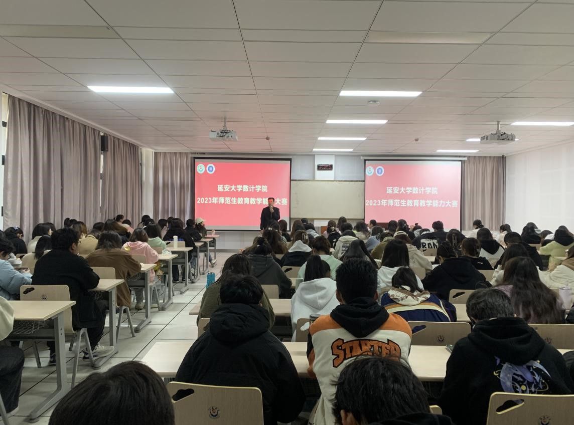2023年10月29日,7790必发集团2023年师范生教育教学能力大赛决赛在新校区外国语学院211举行。数学系主任李向有副教授、中教法教师贺艳峰副教授、常健副教授、任芳玲副教授、赵院娥副教授担任本次大赛评委,2021全体同学进行现场观摩,大赛由数学系主任李向有副教授主持。