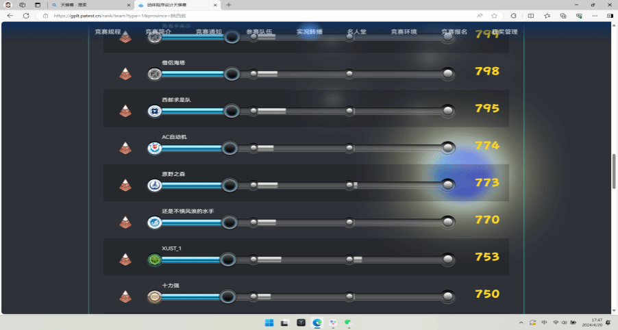 4月20日午,我院以线上参赛方式成功举办第九届中国高校计算机大赛—团体程序设计天梯赛,这是我校首次参与该项竞赛。全院三支队伍共30名学生参加了本次比赛,并顺利完成了竞赛,大赛成绩近日揭晓,其中“AC自动机”队的十名队员获得“华山论剑”组团队省赛三等奖,进一步激发了我校学生参与竞赛的热情,通过竞赛提升专业技能,达到了以赛促教以赛促学的目的。