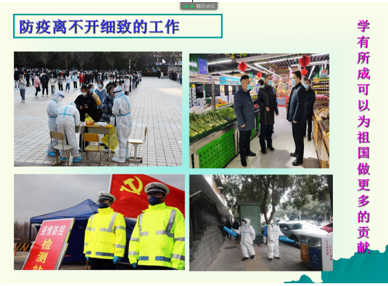 根据学校关于新冠疫情防控要求,学院党委在第一时间成立了学院疫情防控工作领导小组,由党委书记、院长任组长统一安排部署,其他领导班子成员按照职责分工有序地开展疫情防控工作。分管专业教学、公共课教学、学生工作的主管领导、秘书和辅导员落实具体任务,从教学任务落实、课表安排、电子教材、线上授课平台、学生心理疏导、优秀学长讲座等方面制定工作方案,保障各项工作顺利开展。