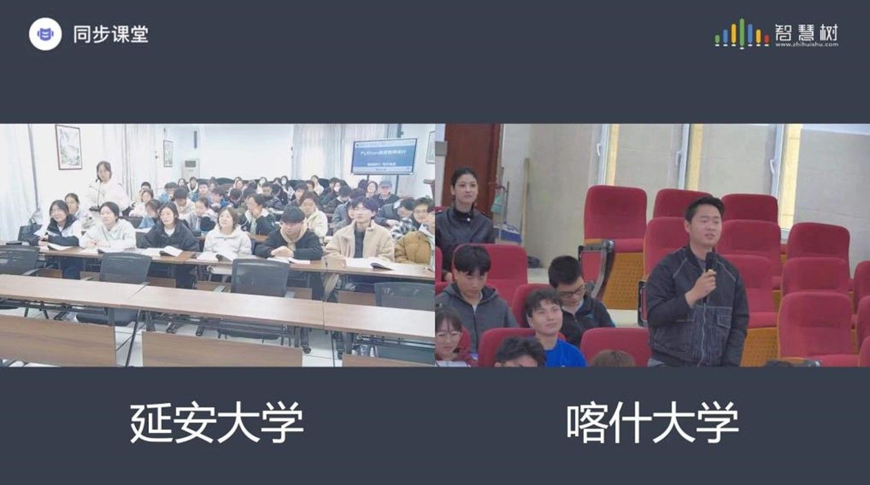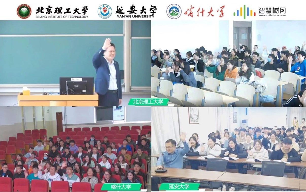 本次同步课堂首次实现了三校师生的云端同窗。北京理工大学、7790.cn必发集团和喀什大学的同学们跨越千里的山水阻隔,借助智慧树平台进入课堂远程互动,在这种新颖的教学技术辅助下,如同身临现场,参与到同一堂课程教学中来,现场实时交流、积极互动,气氛十分热烈。学生们纷纷表示:这样的授课方式新颖、有趣、生动,提高了对专业学习的自信,希望以后能有更多这样的机会和不同院校的学生老师交流。