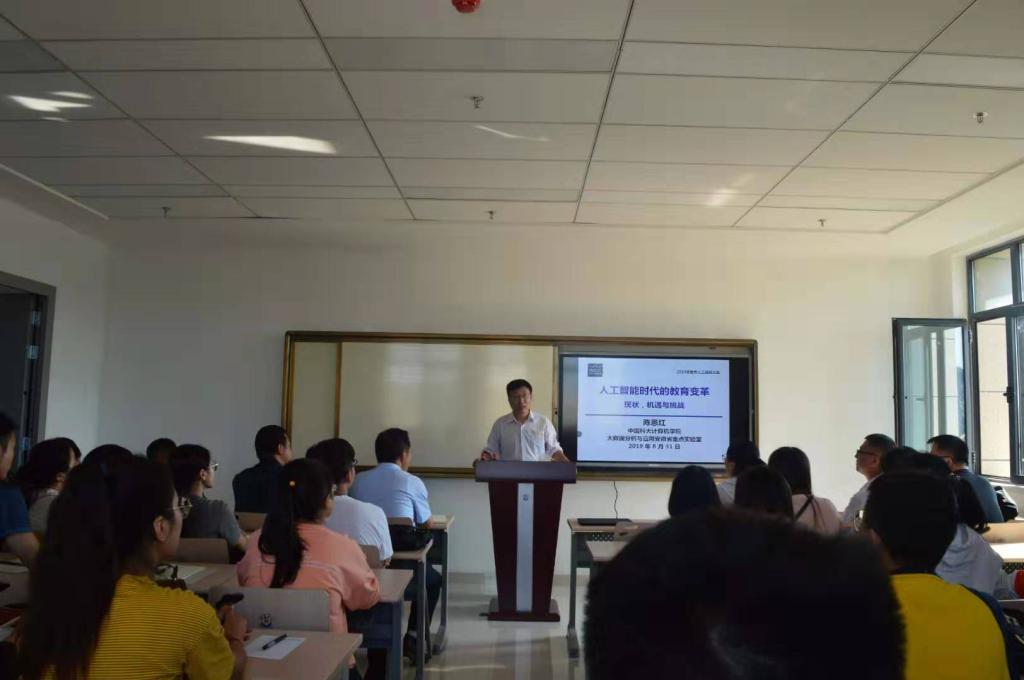 报告会上,陈恩红教授介绍了当前教育面临的痛点和挑战以及大数据时代给教育带来的新机遇;人工智能教育应用案例和他们研究团队的研究成果;对未来人工智能在教育领域的研究主题进行了讨论。报告会的内容来自刚刚闭幕的《2019年世界人工智能大会》陈恩红教授的主旨发言内容。