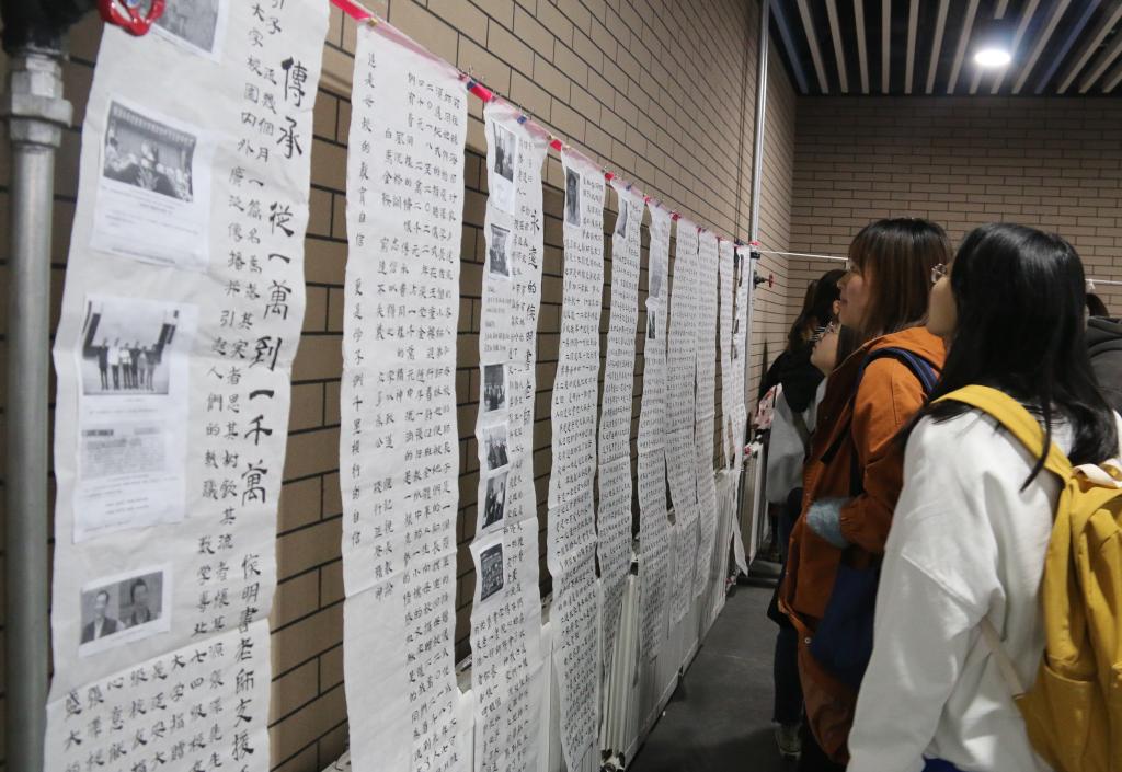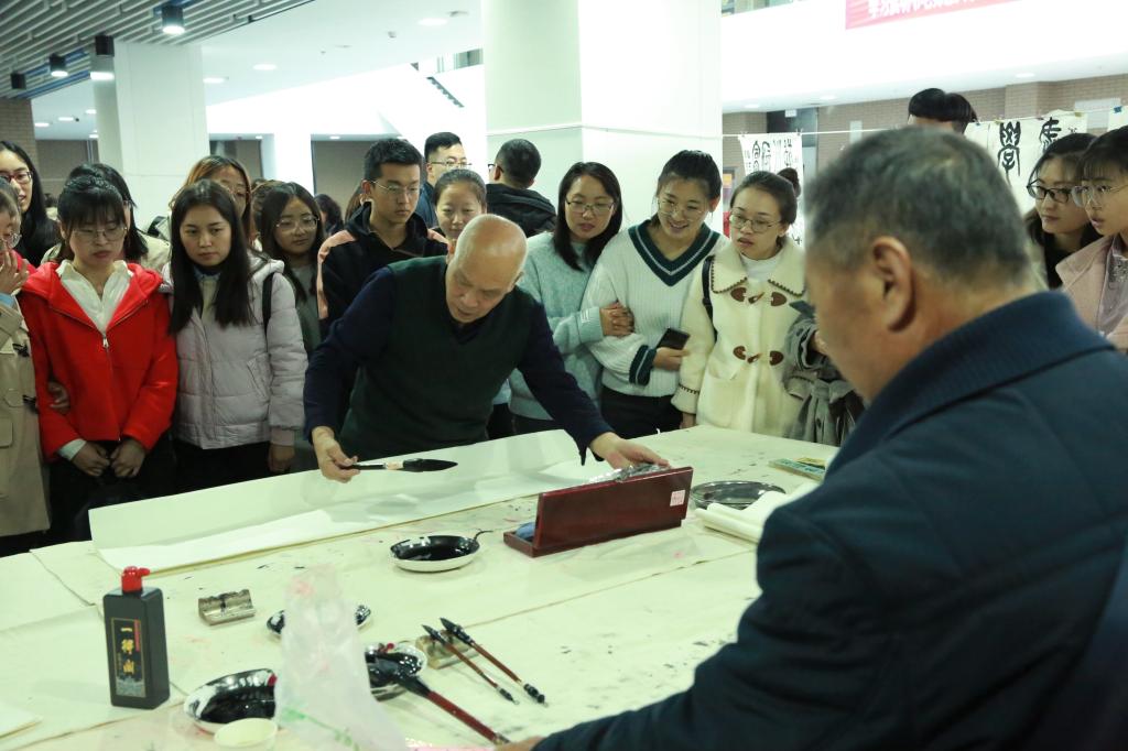 王文发院长宣布纪念“李凤青侯明书青年教师科研基金奖”设立30周年笔会开始。延大书协、延大老年书画社的各位老师向青年教师和同学们展示书法的魅力,在欣赏与学习书法的过程中,不少青年教师与同学跃跃欲试,写下自己的作品向各位老师请教。在书法的交流中,在年轻与沉稳的交流中,青年教师与同学们将学习侯明书精神、颂扬侯明书精神、弘扬侯明书精神、实践侯明书精神推向高潮。