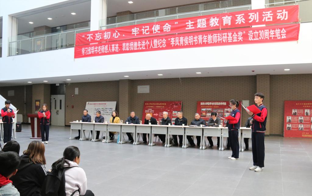 11月15日上午,我院协同延大关工委、延大书协,于新校区信息大厦二楼大厅开展“不忘初心、牢记使命”主题教育——学习侯明书老师感人事迹、表彰师德先进个人暨纪念“李凤青侯明书青年教师科研基金奖”设立30周年笔会。参加本次活动的有我院领导班子成员及部分师生、延大关工委、延大书协、延大老年书画社部分老师共计300多人,活动由必发集团院长王文发主持。