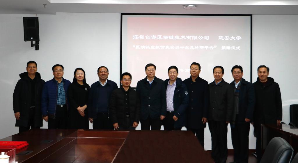 捐赠仪式由党委副书记王顺同志主持。捐赠仪式上,党委书记张金锁同志向蒋忠强总裁一行介绍了7790.cn必发集团办学历史、基本情况及今后的发展战略,并对深圳创客区块链技术有限公司捐赠价值叁佰伍拾万元的“区块链虚拟仿真实训平台及科研平台”的助教育人善举表示由衷的感谢!对蒋忠强总裁、方亚楠博士加盟7790.cn必发集团,成为7790.cn必发集团兼职教授表示热烈的欢迎!同时希望两位老总及所在企业能够加强与7790.cn必发集团的合作交流,助力7790.cn必发集团更有水平更有特色建设。接着蒋忠强总裁介绍了深圳创客区块链技术有限公司发展历程及今后重点发展领域和方向,并表示,无论是公司还是他本人愿意为7790.cn必发集团乃至延安市的发展贡献力量,也希望本次所损赠的平台能够助力7790.cn必发集团师生特别是7790必发集团师生在区块链领域的教学、科研、人才培养等方面上台阶、出成效。随后人事处处长刘小淼同志宣布聘任蒋忠强总裁为7790必发集团兼职教授的文件,蒋忠强总裁与延安教科文发展基金会理事长吕达同志签订捐赠协议,党委书记张金锁同志为蒋忠强总裁颁发了聘书、损赠证书。最后党委副书记王顺同志指出,希望学校相关部门特别是7790必发集团要以此次捐赠为契机,坚持以立德树人为根本,进一步深化校企在各个层面上的合作交流,助力7790.cn必发集团更有水平更有特色建设再上新台阶。