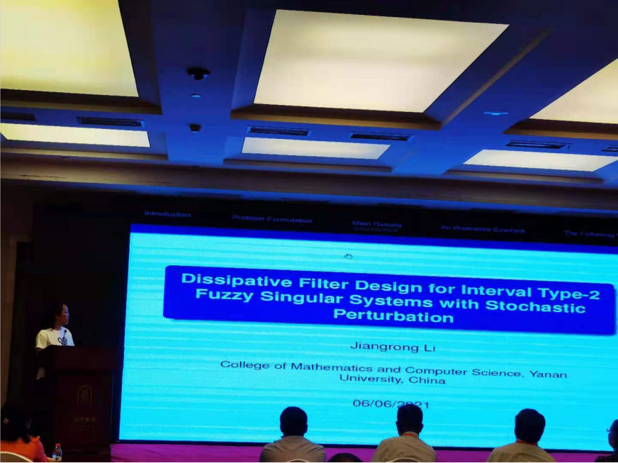 本次大会报告和青年报告共计15场。我院李江荣教授做了题为《Dissipative Filter Design for Interval Type-2 Fuzzy Singular Systems with Stochastic Perturbation》的报告。
