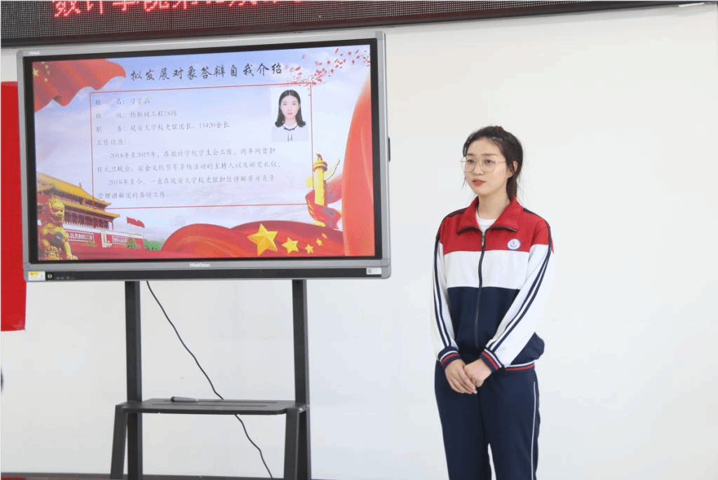 答辩分为自我阐述和评委提问两个环节。同学们利用答辩前精心准备的PPT进行自我介绍,客观地说出自己的任职以及获奖情况,之后对自己的党史学习情况及入党动机进行详细地阐述,并就如何发挥党员的模范作用提出了自己的见解,表明自己勇担青年使命的信心。答辩过程中,老师们对每位同学的答辩作出了评价和提问,充分肯定同学们在政治思想上的进步和入党决心的同时也指出同学们存在的一些不足,并提出建议及希望。同学们面对老师的提问紧紧围绕着入党动机、党性修养、党的性质、权利、义务、原则等基本知识和习近平重要讲话学习等时事热点问题进行回答。