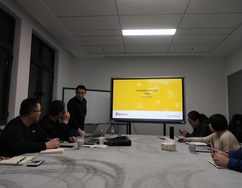 报告会上,王金刚博士首先做了题为《预训练语言模型介绍》的学术报告。以Google BERT为代表的预训练语言模型的研究热点入手,详细回顾了预训练发展历史,介绍Transformer及BERT原理,展望预训练的研究工作,同时也介绍了美团在预训练语言模型研究和应用。随后,高级工程师田俊峰报告了预训练模型下游任务应用实践,从安装环境,数据收集和处理,数据文本分词和ID化,模型训练和验证,模型测试,常见问题等多个方面对预训练模型下游任务应用实践做了精心辅导。整个报告会历时近4个小时,会场气氛热烈而有序。