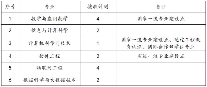2.转入数学类专业需具备较好的数学素养和潜质,转入计算机类专业需具备较扎实的数学基础和实践动手能力。