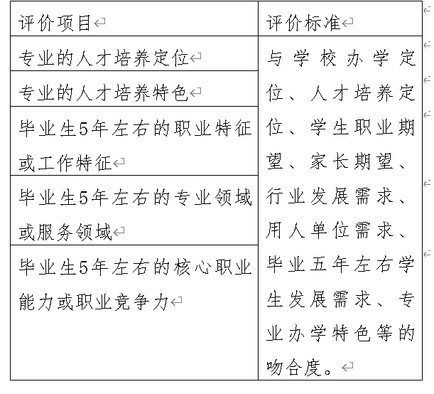 表1.本专业培养目标合理性评价内容和标准