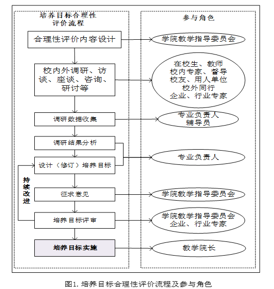 图1给出培养目标合理性评价流程和参与角色。