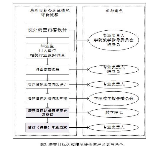 图2为培养目标达成情况评价流程和参与角色图。