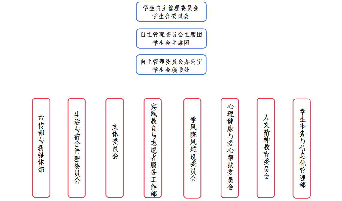 数学与计算机及科学学院学生自主管理委员会组织结构框图